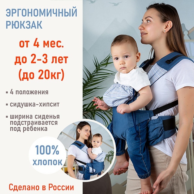 Сочетание эргономичности и практичности Ребёнка можно посадить лицом к себе, покормить и убаюкать. А можно развернуть к миру, любопытные карапузы это обожают. Можно носить с 4-х месяцев и до 2-3 лет. Очень выгодное приобретение и прекрасный подарок на рождение ребёнка!