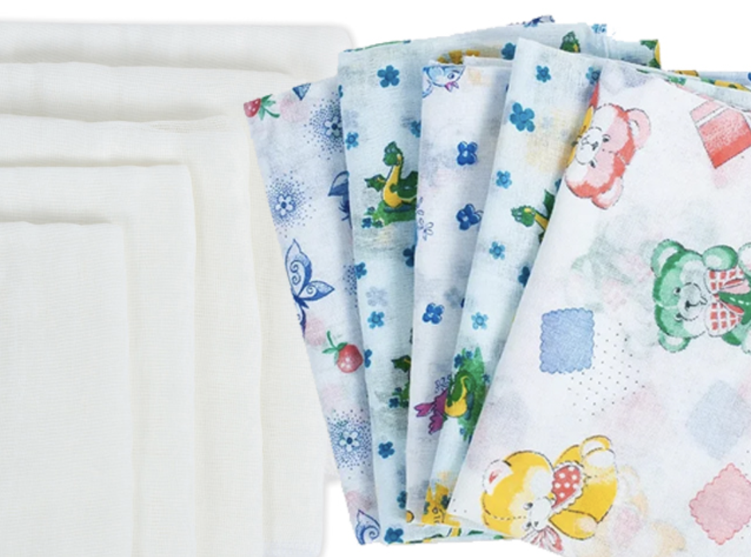В упаковке: 5шт ситцевых/ 5 шт марлевых подгузников;