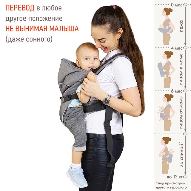 Подходит для детей с рождения до 1,5-2 лет (12кг)