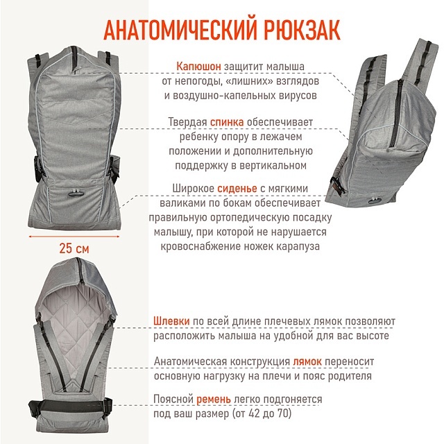 Анатомическая конструкция лямок и поддержка под спину родителя