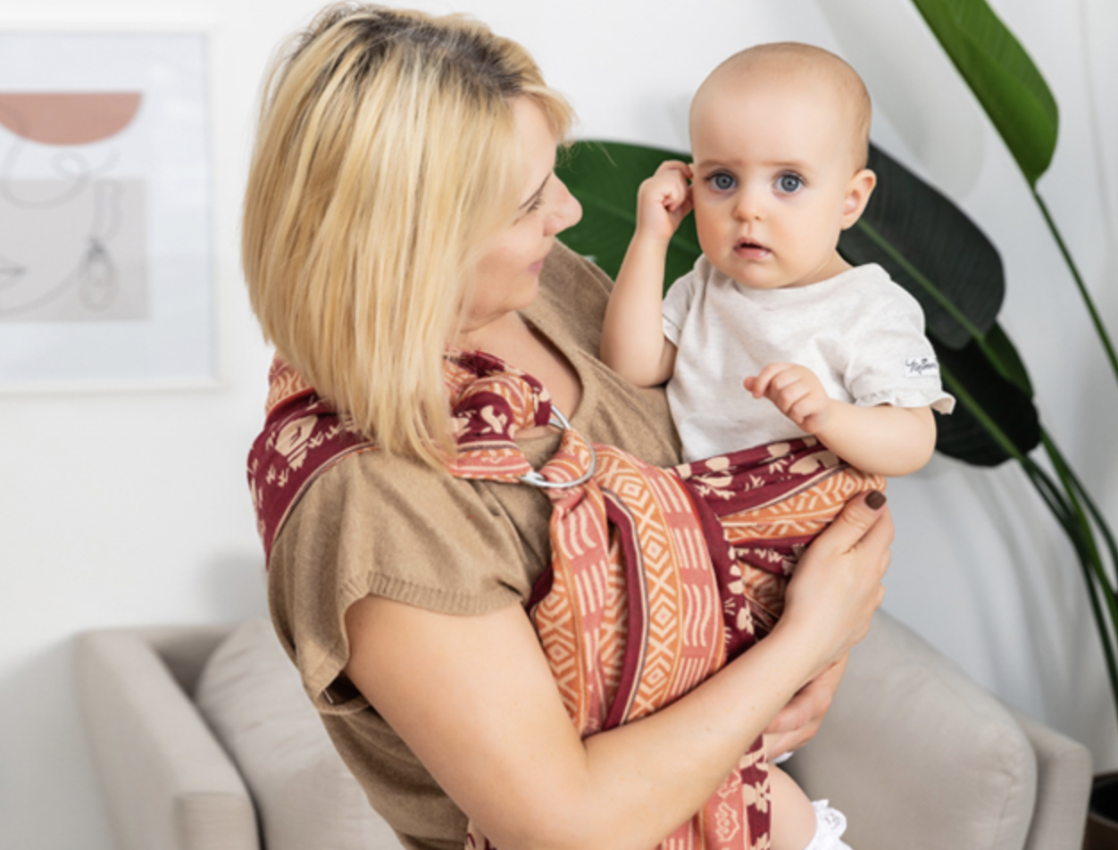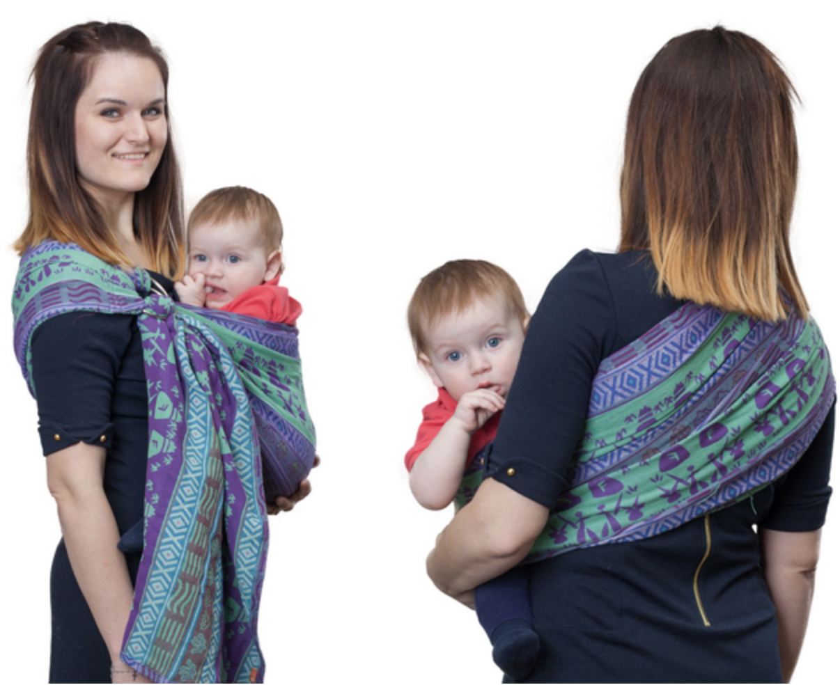 Легок в использовании (подходит начинающим слингомамам) Слинг с кольцами станет Вашим верным помощником, когда нужно быстро подхватить ребенка и покормить/укачать его, дойти в магазин/аптеку, достать из коляски и прогуляться «на ручках» или посидеть с подружками. Мы рекомендуем Вам сначала потренироваться дома, попробовать различные положения, а потом при некотором опыте и сноровке, Вы сможете быстро и легко одевать и сажать малыша в слинг с кольцами даже на улице. В этой модели нет бортиков, так что его края легко подтянуть и подобрать длину под размер малыша.