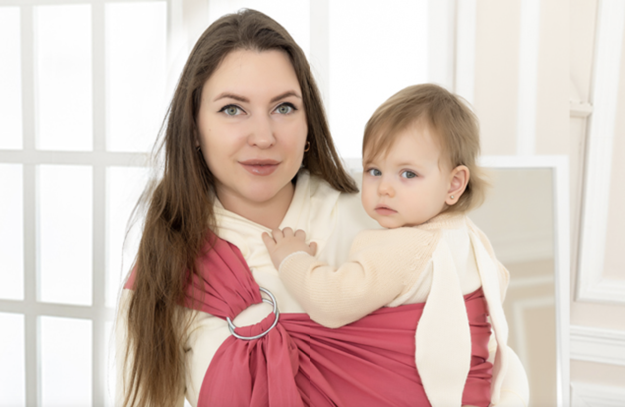 Слинг сразу готов к надеванию Особенность наших слингов с кольцами - это сразу заправленный в кольца хвост (сформированный «карман» для ребенка). Очень удобно для начинающих слингопользователей!